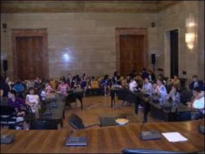 (PTN) TERNI Gli studenti delle quarte elementari del Leonino di Terni sono stati ricevuti stamattina dallamministrazione provinciale, nellambito dei programmi didattici della scuola e in collaborazione con gli enti pubblici locali. I ragazzi hanno fatto visita al Consiglio ed hanno assistito ad una lezione sulla storia di Palazzo Bazzani, le sue funzioni e le competenze del presidente della Provincia e dei Consiglieri. I giovani del Leonino hanno mostrato vivo interesse partecipando attivamente alla spiegazione con una lunga serie di domande. La visita si č conclusa con il saluto anche del perfetto di Terni. (nella foto un momento della visita)
